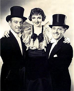 Claudette Colbert zwischen zwei Männern. Melvyn Douglas und Michael Bartlett |