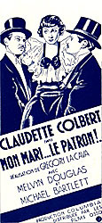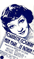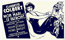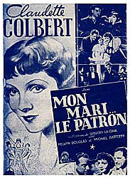 Die französischen Plakate stellen natürlich auch Claudette Colbert in den Vordergrund, allerdings wird sie hier eher noch mondäner dargestellt und die Plakat Motive werden auch im künstlerrischen Stil im Art Decor umgesetzt |
